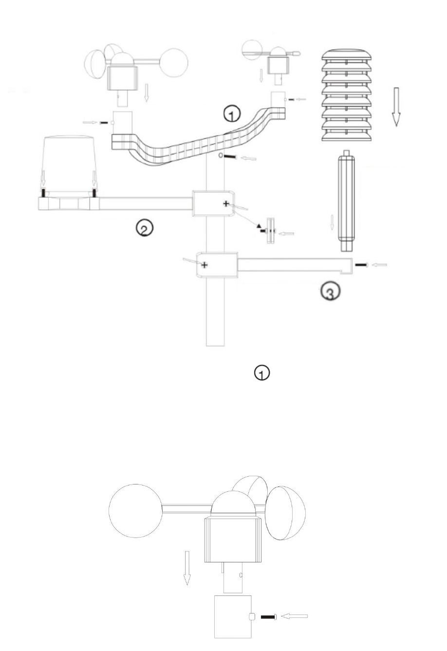 2) Montaje del sensor de velocidad del viento en la abrazadera de plástico: