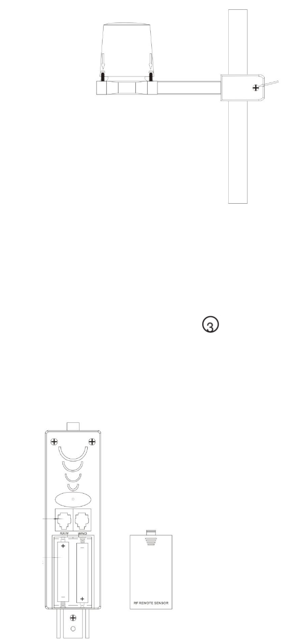 Sobald die Windsensoren und der Regensensor an der Halterung befestigt sind, stecken Sie