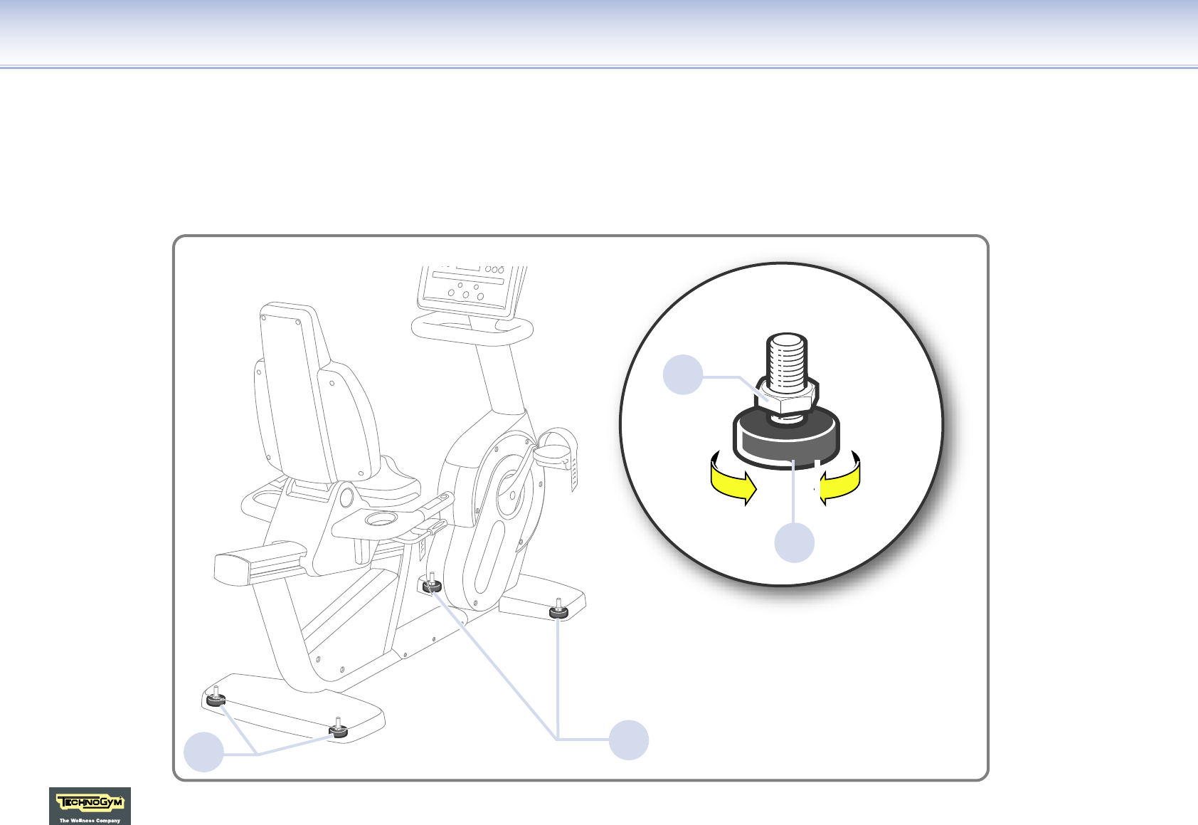 - Lockern Sie die Gegenmutter (B) und schrauben Sei die Stellfüße (A) heraus oder hinein, bis sich der Rahmen in stabiler