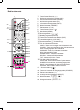 Control buttons 1 2 3 22 4 21 20 5 6 7 19 18 -/- - 8 9 10 11 17 12 13 14 15 16 1. Power/Standby button (z) 2. Picture noise reduction button (NR.) 3. Sleep function button (SLEEP) 4. NICAM sound mode select button (I/II) 5. Information display button (INFO) 6. Picture frozen button (FREEZE) 7. Number buttons (0, 1~9) 8. Channel return button ( ) 9. Menu button (MENU) 10. Arrow buttons (o, a, p, b) 11. Con� rm button (ENTER) 12. Menu exit button (EXIT) 13. Volume control buttons (- VOLUME +) 14.