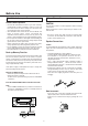 Before Use Read this before operation Before Connection Read this before operation CAUTION < Choose the installation location of your unit carefully. Avoid placing it in direct sunlight or close to a source of heat. Also avoid locations subject to vibrations and excessive dust, heat, cold or moisture. < The ventilation holes should not be covered. Make sure there is enough space above and beside the amplifier/receiver (about 4 inches).