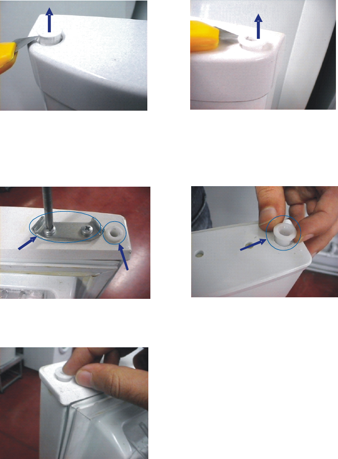 12- Setzen Sie die obere Buchse und die Abdeckung der Buchse der Gefrierschranktür