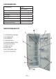 LIEFERUMFANG Lieferumfang Modell Kühl - Gefrier Glasablagen 5 Gemüse-Schubladen 1 Türablage 2 Eier Fach 4 Eierablage 1 Garantieunterlagen Ja Gebrauchsanleitung Ja GERÄTEÜBERSICHT 1) THERMOSTAT DECKEL 2) GLASABLAGE 3) GLASREGAL 4) GEMÜSEFACH 5) VERSTELLBARE FÜßE 6) FLASCHEN FACH 7) EIER HALTER 8) EIER FACH 9) BUTTER KÄSE FACH 10) LICHT SCHALTER DE -1-