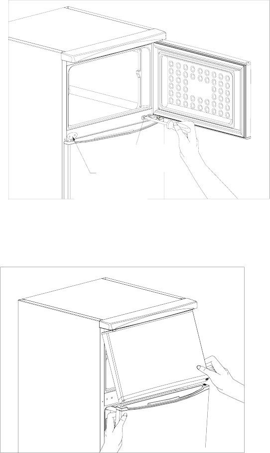 2- Bauen Sie die Tür des Kühl- und Gefrierschranks ab, indem Sie die Tür zusammen mit