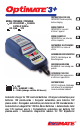 UTILIZAR EL OPTIMATE™3+ LOS PUNTOS A CONTINUACIÓN TIENEN EL MISMO NÚMERO QUE EL GUÍA RÁPIDO. 1. y 2. Conexiones y alimentación Conecta el cargador a la batería: la pinza ROJA al borne POSITIVO (POS, P, +), la pinza NEGRA al borne NEGATIVO (NEG, N,–). Ahora estas listo(a) para empezar: 1. Conecta el cargador a una toma CA 220-240V. El LED de alimentación (#1) debe encenderse. Si no, controla el enchufe y la conexión. 2.