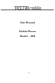 2 Know your phone 1. 3. 5. 7. 9. 11. 13. 15. 17. Earphone plug Receiver USB port Front camera Volume key Light/proximity sensor Virtual key SIM card slot Tri-color light 2. 4. 6. 8. 10. 12. 14. 16.