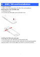 4 SIM / SD card installation 1. Power off mobile. 2. Refer to the following picture for SIM / SD card installation. Removing the cover and SIM cards. 1. Unclip the cover. 2. To remove the SIM cards, press and slide it out. Installing the SIM cards and cover. 1. You must insert your SIM cards to make phone calls. 2. To install SIM cards, place the SIM cards with chip facing downwards, and then slide it into its slot. Make sure that it is correctly inserted.