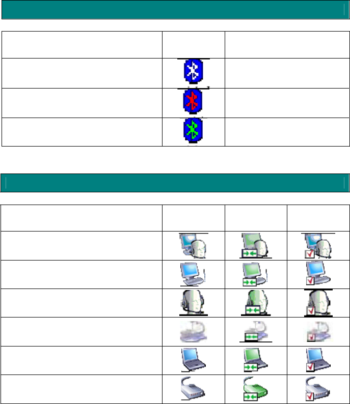 Each Bluetooth icon changes its color to provide at-a-glance feedback about the status of a