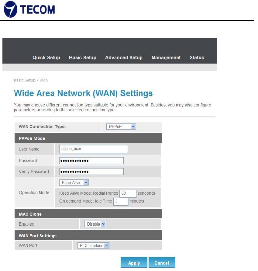 Select this option if your ISP requires you to use a PPPoE connection. This
