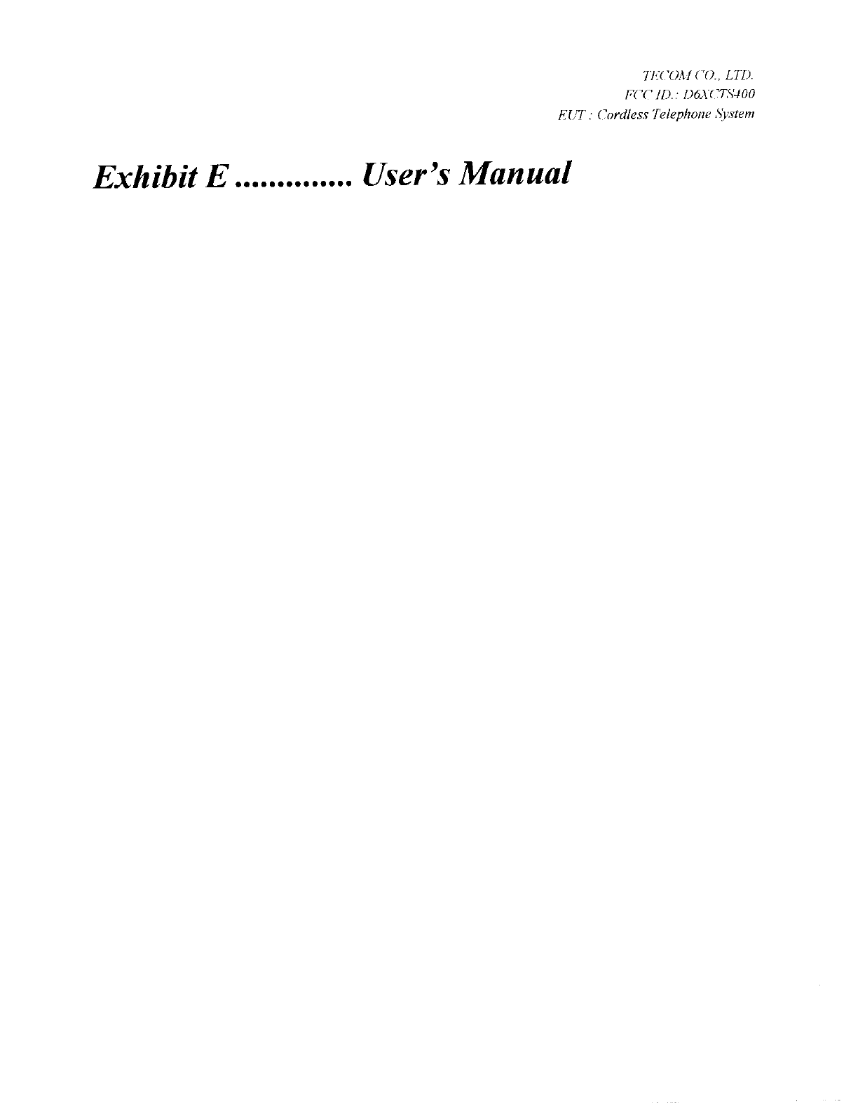| TIT wr || EE TABLE OF CONTENTS INTRODUCTION Becoming Familiar With Your Handset... The Display The Features. What's Included With Your Handset Components of the CTS<400 System OE INSTALLATION i. Site Planning 2. Configuration 3. Installing the Hands: Battery Charger 4. Iostalling/Changing the Handset Battery 5. Charging the Handset Battery 6. Standby Mode... 7. Power Down/Power On Mode §. Setting the Identification. 9. Seating the Ringer and Receive Volume . 10.