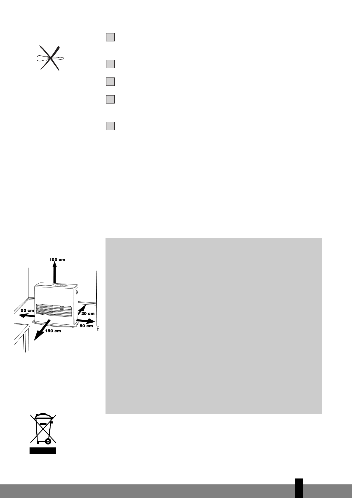 Gebruik de kachel nooit in natte ruimtes zoals in de nabijheid van een