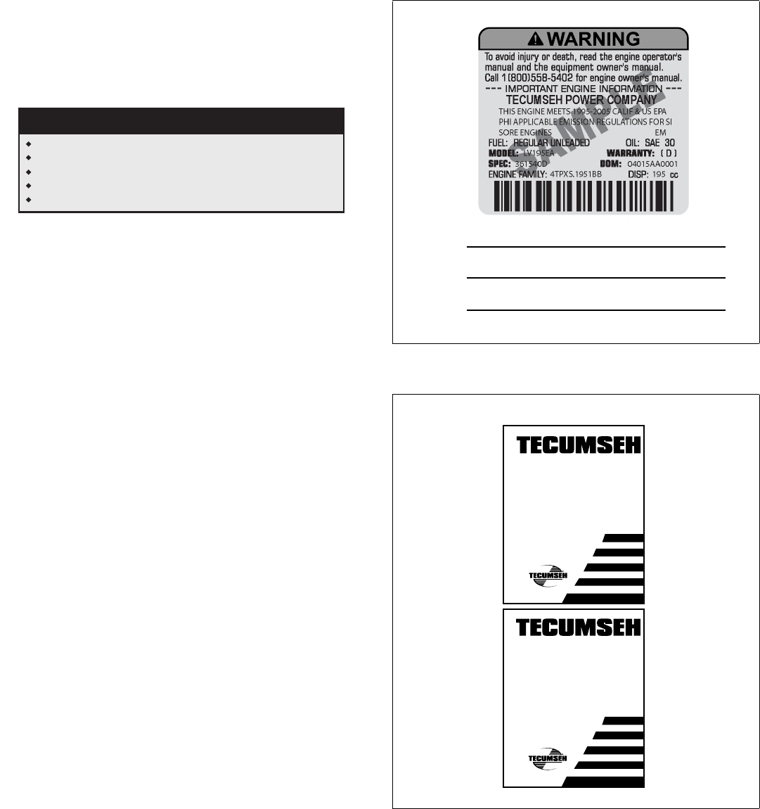 Handbook is available from your Authorized Tecumseh