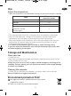 9100012806_01_FS28XX_110x154 13/12/12 10:19 Page16 产品使用 EN 调节温度 • 设定指示器对应的温度调节器选择温度(见下表)。 FR 织物类型 温度调节器指针位置 亚麻 最大数 MAX ••• 棉 PT •• 羊毛 丝织物 合成纤维 (聚酯纤维、醋酸纤维素、丙烯酸纤 维、尼 龙) • VI •加热指示灯亮,表示熨斗正在加热。当底板达到足够温度时,指示灯灭。 • 由于熨斗加热非常快,熨烫应先从需低温熨烫的纤维织物开始,然后再熨烫需 TH 高温熨烫的织 物。 • 如需熨烫混合织物,选择的熨烫温度应根据耐热性较低的织物来决定。对于纤 细织物,建议 先对衣物非显著部位(如,内缝口)进行熨烫试验。 MS 熨烫期间指示灯时亮、时灭,属于正常现象。 如果您调低了熨烫温度,应待加热指示灯再次亮起后才可继续熨烫。 存储和维护 KO 储藏 • 拔掉插头。 • 待底板冷却后将电源线缠绕于熨斗的后部。 • 将冷却的熨斗竖立存放。 请一直将熨斗竖立放置以避免损害或刮擦底板。 警告:将您的熨斗平放于金属表面可能损害或刮擦底板。 RC 清洁底板 H
