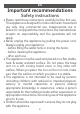 EN Important recommendations Safety instructions EaZVhZ gZVY i]ZhZ ^chigjXi^dch XVgZ[jaan WZ[dgZ Äghi jhZ# I]^h Veea^VcXZ ^h YZh^\cZY [dg ^cYddg YdbZhi^X ]djhZ]daY jhZ dcan# 6cn XdbbZgX^Va jhZ! ^cVeegdeg^ViZ jhZ dg [V^ajgZ id Xdbean l^i] i]Z ^chigjXi^dch! i]Z bVcj[VXijgZg VXXZeih cd gZhedch^W^a^in VcY i]Z \jVgVciZZ l^aa cdi Veean# CZkZg jceaj\ i]Z Veea^VcXZ Wn ejaa^c\ i]Z edlZg XdgY# 6alVnh jceaj\ ndjg Veea^VcXZ/ " WZ[dgZ Äaa^c\ i]Z lViZg iVc` dg g^ch^c\ i]Z Wd^aZg! " WZ[dgZ
