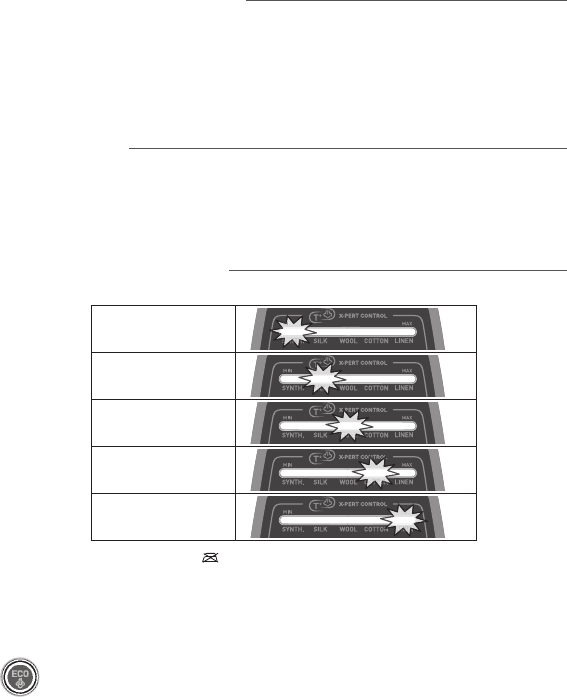 • Οι φωτεινές ενδείξεις SYNTH. / SILK / WOOL / COTTON / LINEN ελέγχουν τους συνδυασμούς θερμοκρασίας και ροής