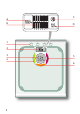 De verschillende tekeningen zijn uitsluitend bedoeld ter illustratie van de kenmerken van de Tendancy glass en zijn geen exacte weergave van de werkelijkheid. NL Omschrijving Personenweegschaal 1. Vier persoonlijke geheugentoetsen 2. Display met grafiek voor de opvolging van de gewichtsverschillen 3. Displayweergave voor het gewicht 4. Lichtgevende indicator bij gewichtsverlies 5. Lichtgevende indicator bij gewichtstoename 6.