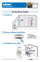 518_Q 03/13 Thermostat 518 Zoning Replaces: New Quick Setup Guide 1. Location Interior Wall 5 feet 1.5 m Exterior Wall 2. Remove Mounting Base 3.