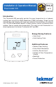 Installation & Operation Manual 518_D Thermostat 518 06/16 Zoning Replaces: 03/13 Introduction The Thermostat 518 accurately controls the room temperature for a hydronic heating zone using Pulse Width Modulation (PWM) technology. Simple up and down buttons and a display with large type make this thermostat easy to read and use. The 518 automatically detects a single auxiliary sensor to measure either outdoor, floor or remote room temperature.