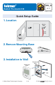 519_Q 03/13 Radiant Thermostat 519 Zoning Replaces: New Quick Setup Guide 1. Location Interior Wall 5 feet 1.5 m Exterior Wall 2. Remove Mounting Base 3.