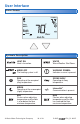 User Interface Home Screen Outdoor F F Away WWSD Room MINMAX Mode Off Floor Heat On Symbols Description HEAT ON Heat is turned on. WWSD Warm Weather Shut Down. MODE OFF The heating system is off. WARNING SYMBOL Indicates an error is present. SUN Operating at the occupied (day) temperature. SCENE AWAY Operating at Away temperature. MOON Operating at the unoccupied (night) temperature. tekmarNet® Communication is present.