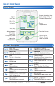 User Interface Home Screen Display Humidity, Heat Cool settings, Floor or Outdoor temperature Adjust the Time Adjust the Schedule Room Temperature Away Key Turn the Fan on Switch between Auto, Heat, Cool, Off & Emergency Mode Adjust the Temperature Home Button Return to the ‘Home’ Screen from any menu Symbols Description HEAT ON Heat is turned on. WARNING SYMBOL Indicates an error is present. COOL ON Cooling is turned on. ARROWS Adjust the displayed setting. FAN The fan is turned on.