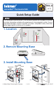 554_Q 02/15 tekmarNet® Thermostat 554 Zoning Replaces: New Quick Setup Guide The information contained herein is not intended to replace the full product installation and safety information available or the experience of a trained product installer. You are required to thoroughly read all installation instructions and product safety information before beginning the installation of this product. 1. Location Interior Wall Behind Door 5 feet 1.5 m Exterior Wall 2. Remove Mounting Base 3.