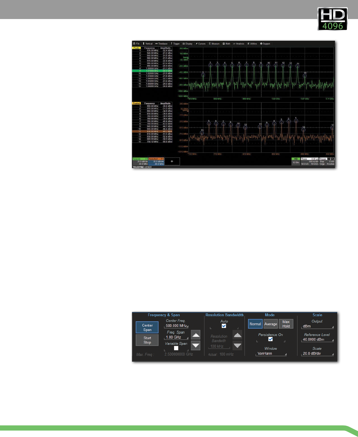 Spectrum analyzer style controls simplify waveform analysis in the frequency domain.