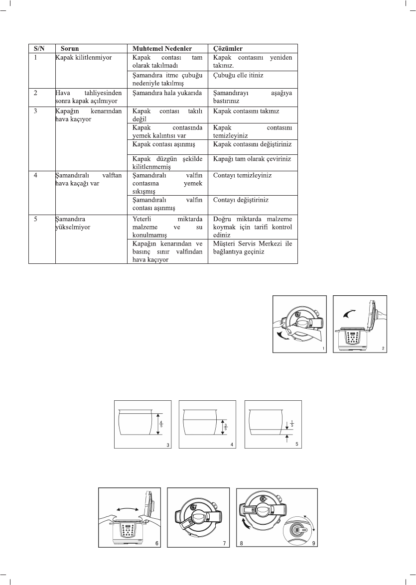 piflirirken tencereyi 3/5 seviyesinden daha fazla doldurmay›n›z. (Bkz. resim 3, 4 ve 5)