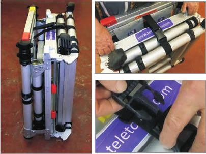 strap can then be undone to free the cage side and ladder sections prior to erecting the Tasc-Pod.