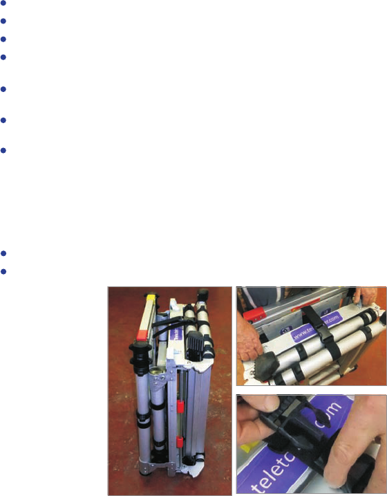 par une sangle en tissu autour des parties d'échelle et sur un côté de la nacelle comme indiqué