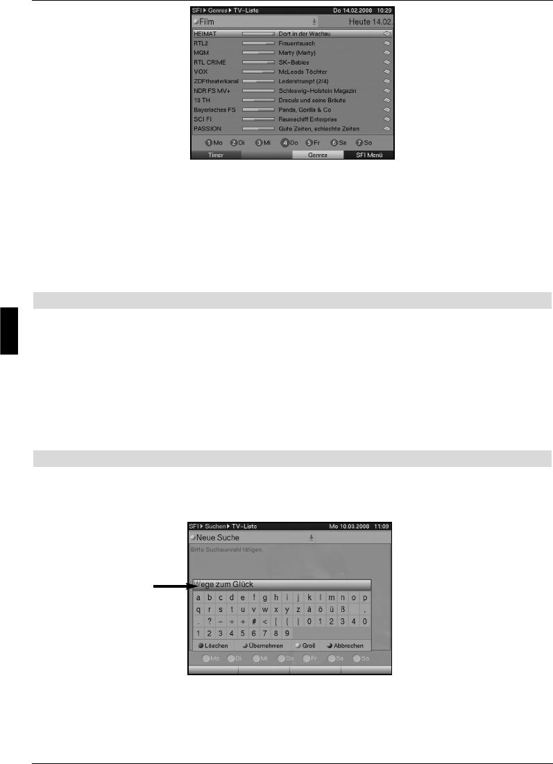 Teil des Titels eingeben. Der SFI durchsucht dann die Daten nach dieser Sendung.