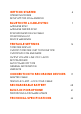 GETTING STARTED 4 OPERATING MODES SETUP APP FOR IOS & ANDROID BLUETOOTH & CABLE SYNC 7 WIRELESS SYNC WIRELESS MASTER SYNC SYNCHRONIZATION VIA CABLE MONITORING LIST DEVICE WARNINGS TENTACLE SETTINGS 12 TIMECODE DISPLAY CUSTOM TIMECODE / SET TO PHONE TIME CUSTOMIZE ICON AND NAME OUTPUT VOLUME LINE / MIC / AUTO SET FRAME RATE AUTO POWER OFF TIME GENERAL INFORMATION USER BITS CONNECTION TO RECORDING DEVICES 17 ADAPTER CABLE TENTACLE CLAMP - LOCK YOUR CABLE RECHARGEABLE BATTERY 20 BUILT-IN MICROP
