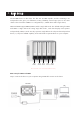 User Manual 1. Appearance Panel Illustration Rear Cover Illustration ① ② ⑧ ⑦ ⑥ ⑤ ③ ④ NO. Item ① Hard Drive Indicators 1 & 2 Off: Hard drive not detected or hard drive in sleep mode Green: Hard drive is ready Flashing Green: Reading/writing Flashing Red: Hard drive fault or array damage Note: During the process of data recovery on RAID 1 mode, one hard drive indicator flashes green while the other flashes yellow.