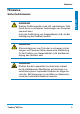 Wskazówki Wskazówki Zasady bezpieczeństwa OSTRZEŻENIE Pozostałe źródła zagrożeń to np. elementy mechaniczne mogące przyczynić się do powstania poważnych obrażeń ciała. Istnieje również zagrożenie dla przedmiotów materialnych (np. uszkodzenie urządzenia). OSTRZEŻENIE OSTRZEŻENIE Nie kierować promienia lasera nigdy bezpośrednio lub pośrednio przez powierzchnie odbijające światło na oczy. Promieniowanie laserowe może doprowadzić do nieodwracalnych uszkodzeń wzroku.