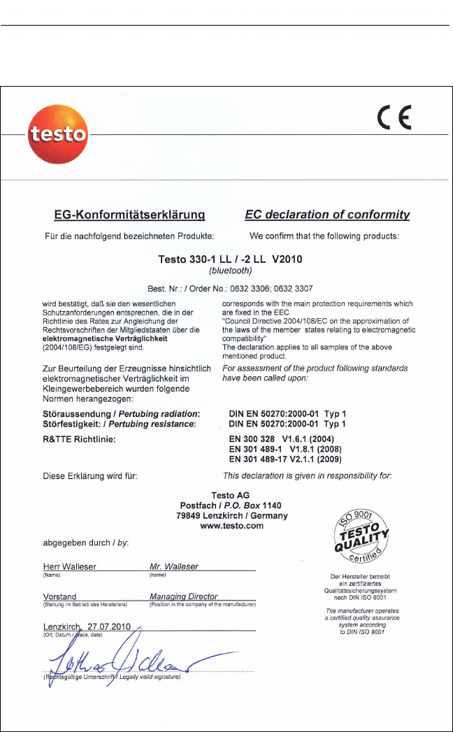 Pos: 26 /TD/Leistungsb eschreibung/ Technische Daten/testo 330 Technische Daten/Konf ormitätserkläru ng testo 330 @ 6\mod_127866 747
