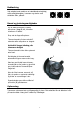 Identifikation af dele 3 1. Afbryder 2. Ledning 3. Greb til at dreje øverste del 4. Justering af vinkel 5. Trimmer hoved 6. Justerbart front håndtag 7. Justering af teleskopskaft 8. Motorhus 9. Skærm med kniv 10. Plantebeskyttelse 6 1 7 2 8 4 10 9 5 Montering 1. Pak produktet ud og placer alle dele på en flad, stabil flade. 2. Fjern al emballage. 3. Sikre at alle dele er skadesfri. Skulle nogle dele mangle eller have taget skade, kontakt da straks forhandler.