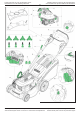 Jeśli urządzenie nie jest używane przez dłuższy czas, prosimy zapoznać się z tym podręcznikiem . Wszystkie etykiety należy utrzymywać w dobrym stanie i w razie konieczności wymieniać. Używać tylko oryginalnych części zamiennych lub akcesoriów. W przypadku użycia nieoryginalnych części lub akcesoriów wygasa wszelka odpowiedzialność. Montaż Rozpakowywanie: Ilustracja M1 Wyjąć kosiarkę z pudełka, wyciągając ją z boku. Opakowanie zawiera: 1 kosiarkę 4 nakrętki motylkowe + śruby i podkładki.