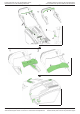 Ładowanie w trakcie sezonu Akumulator jest częściowo ładowany podczas pracy, lecz jest może być niezbędne pełne jego ładowanie klika razy w ciągu sezonu - w zależności od liczny uruchomień/zatrzymań silnika. Akumulator należy ładować 5 godzin. Osłona wylotu tylniego: Ilustracja M7-1 Jeżeli koszenie będzie odbywać się bez pojemnika na trawę, ważne jest, aby założyć dwie nakładki. 1. Włożyć 2 nakładki (E) pod osłonę wylotu tylniego.