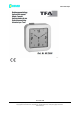 www.conrad.pl INSTRUKCJA OBSŁUGI Nr produktu 2238227 Budzik TFA Dostmann 60.2556.02, analogowy, cyfrowy, Sterowany radiowo Strona 1 z 10 Dystrybucja Conrad Electronic Sp. z o.o., ul. Kniaźnina 12, 31-637 Kraków, Polska Copyright © Conrad Electronic, Kopiowanie, rozpowszechnianie, zmiany bez zgody zabronione. www.conrad.