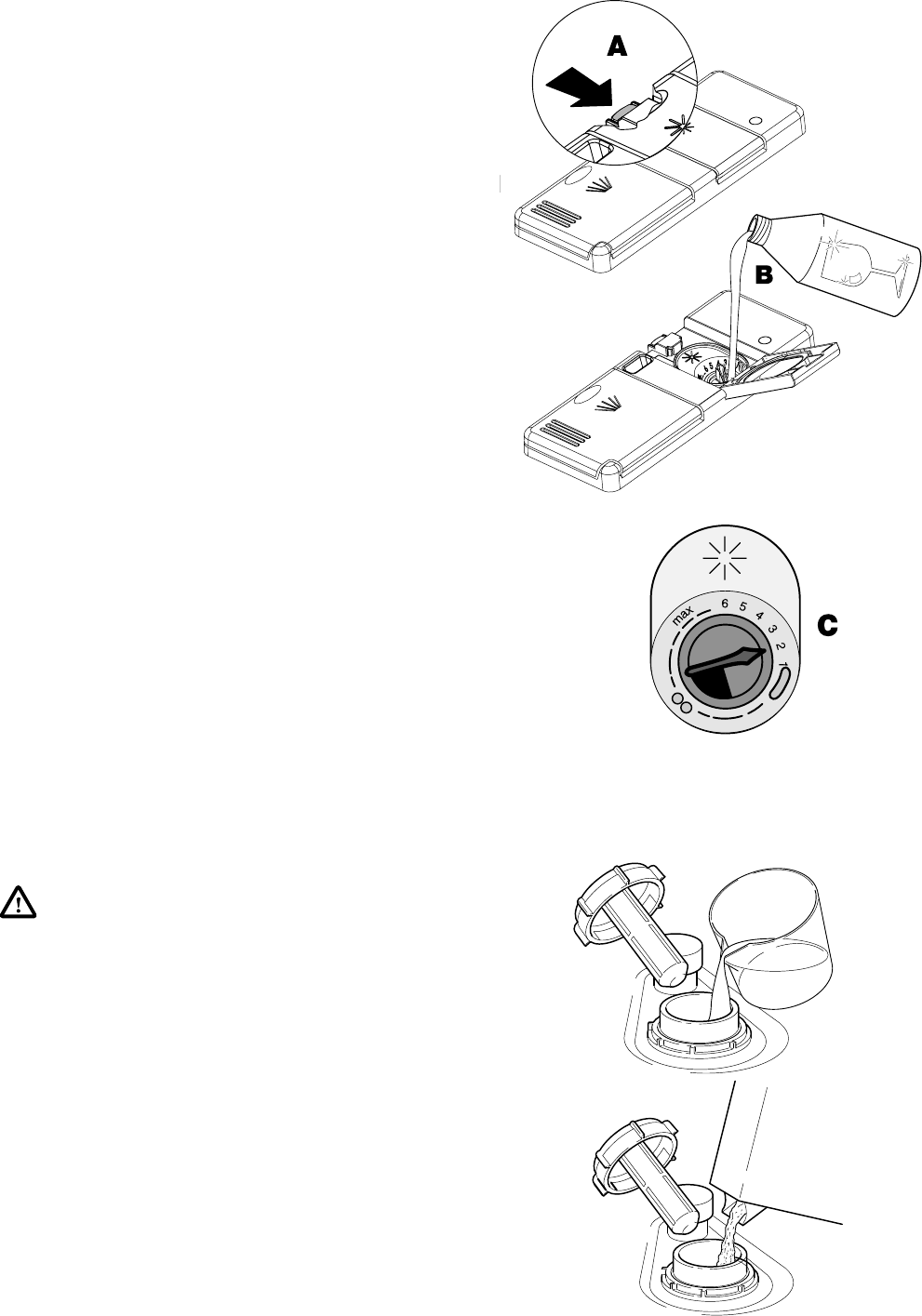 3. Ajouter 1 kg de sel (C) de régénération. Env. 1 l