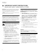 Safety 9 IMPORTANT SAFETY INSTRUCTIONS READ AND SAVE THESE INSTRUCTIONS INSTALLER: Save these instructions for the local electrical inspector’s use. Please leave these instructions with this unit for the owner. Show the owner the location of the circuit breaker. Mark it for easy reference. OWNER: Read and save these instructions. Please retain these instructions for future reference. WARNING When properly cared for, your new appliance has been designed to be safe and reliable.