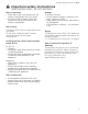 Important safety instructions en-us 9 Important safety instructions READ INSTRUCTIONS - DO NOT DISCARD! Risk of cold burns ■ ■ Never put frozen food straight from the freezer compartment into your mouth. Avoid prolonged contact of skin with frozen food, ice and the tubes in the freezer compartment. Risk of Injury Containers which contain carbonated drinks may burst. Do not store containers which contain carbonated drinks in the freezer compartment.