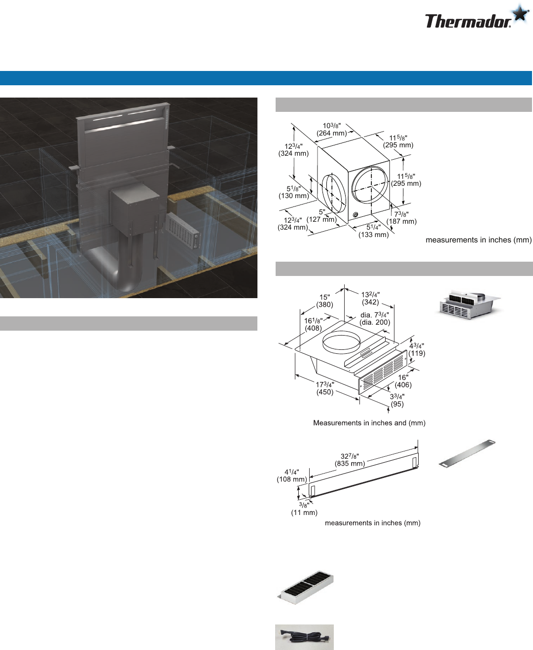 * For only front downward ducting applications, electrical panel must be remotely mounted. Optional 5' extension cable EXTNCE5 accessory is available to connect remotely placed electrical