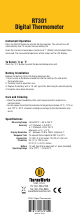 • Do not expose the entire thermometer to temperatures below 1F / -10°C or