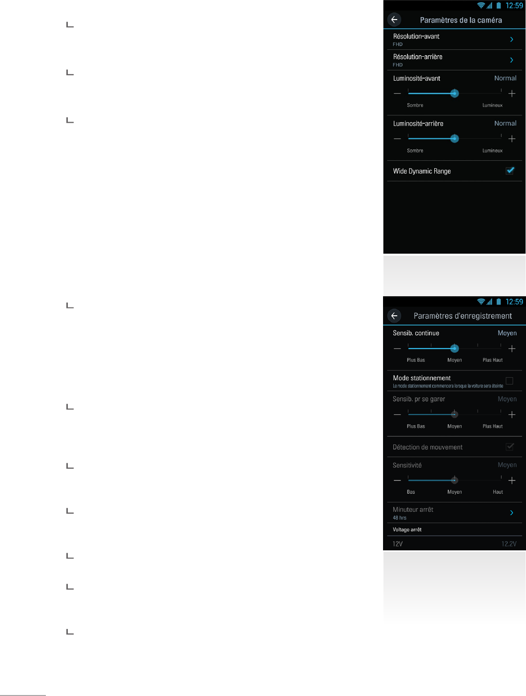 Permet le réglage du niveau de tension pour arrêter automatiquement la caméra de tableau de bord si