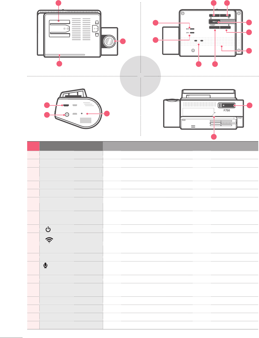 1 Lentilles de la caméra Caméra orientée vers l'avant pour l'enregistrement vidéo
