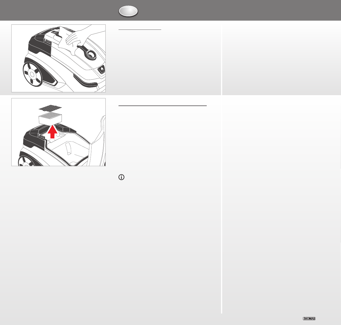 Vorfilter je nach Gebrauch bei nachlassender Saugkraft – spätestens