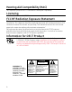 Hearing Aid Compatibility (HAC) This telephone system meets FCC standards for Hearing Aid Compatibility. Licensing Licensed under US Patent 6,427,009. FCC RF Radiation Exposure Statement This equipment complies with FCC RF radiation exposure limits set forth for an uncontrolled environment. This equipment should be installed and operated with a minimum distance of 20 centimeters between the radiator and your body.