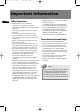 CS196 EN 17/2/06 7:28 PM Page 7 Important Information Important Battery Information Don’t Infringe • Remove the batteries to avoid leakage if you do not use your remote control for more than one month. • Discard leaky batteries immediately as leaking batteries may cause skin burns or other personal injuries. Dispose of batteries in the proper manner, according to provincial and local regulations.