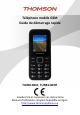 Téléphone mobile GSM Guide de démarrage rapide TLINK11BLK, TLINK11WHT Veuillez lire et conserver ces instructions. Manuel d’utilisation complet disponible en ligne: http://www.thomsonphones.
